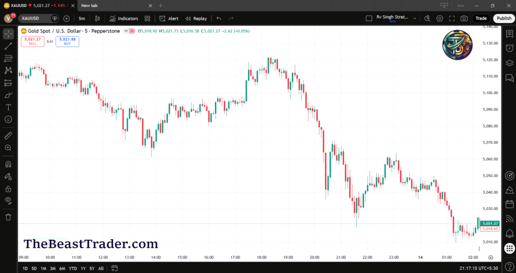 Chart Above is XAU/USD (GOLD), 5min. Chart time frame Which shows a clear picture of price movement of the Index in a simple manner.